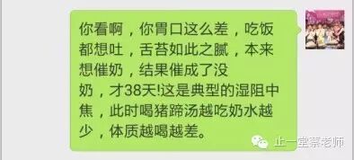 看到这里,如果得出饮食与母乳没有关系,未免太草率。因为有的人吃猪脚汤的确能催出奶。答案就在体质里。像这个妈妈的体质情况下,猪脚汤可是帮倒忙的: