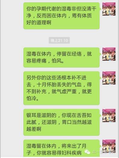 今天,以这个向我咨询月子病的妈妈为例,主要分析下月子饮食调理。